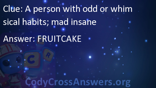 A person with odd or whimsical habits; mad insane Answers