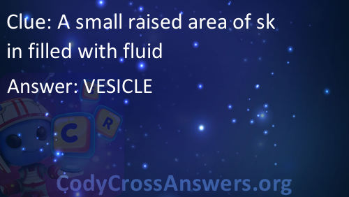 A small raised area of skin filled with fluid Answers