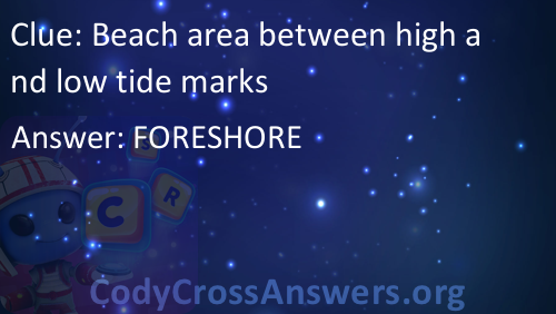 Beach area between high and low tide marks Answers