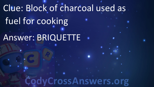 Block of charcoal used as fuel for cooking Answers