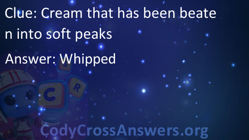 Cream that has been beaten into soft peaks Answers