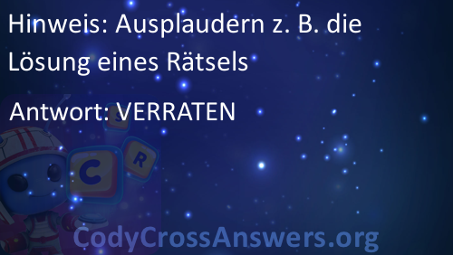Ausplaudern z. B. die Lösung eines Rätsels Lösungen
