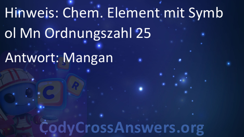 Chem. Element mit Symbol Mn Ordnungszahl 25 Lösungen