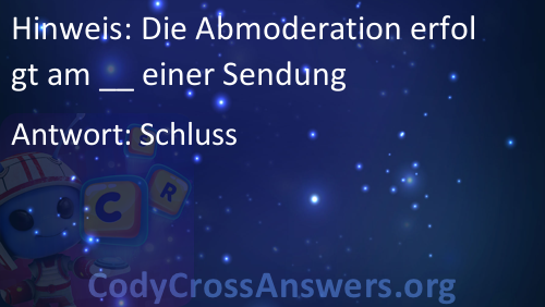 Die Abmoderation erfolgt am __ einer Sendung Lösungen