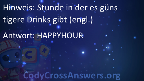 Stunde in der es günstigere Drinks gibt (engl.) Lösungen