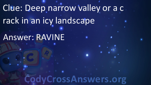 Deep narrow valley or a crack in an icy landscape Answers