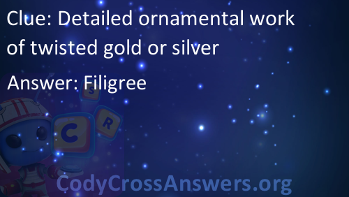 Detailed ornamental work of twisted gold or silver Answers