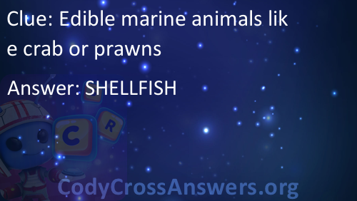 Edible marine animals like crab or prawns Answers