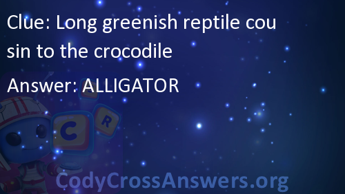 Long greenish reptile cousin to the crocodile Answers