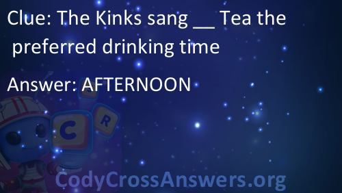 The Kinks sang __ Tea the preferred drinking time Answers
