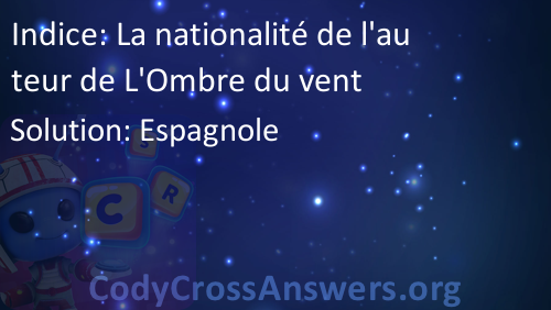 La nationalité de l'auteur de L'Ombre du vent Solution