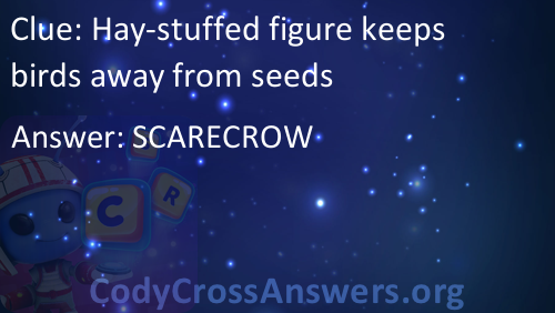Hay-stuffed figure keeps birds away from seeds Answers