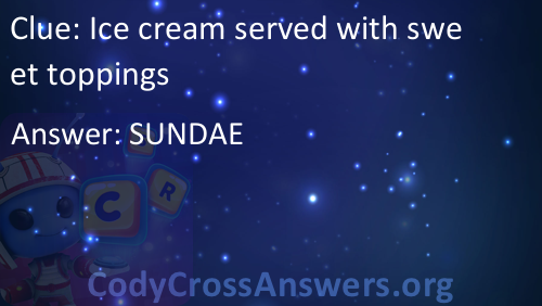 Ice cream served with sweet toppings Answers