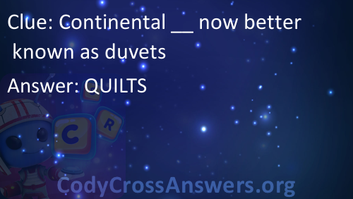 Continental __ now better known as duvets Answers