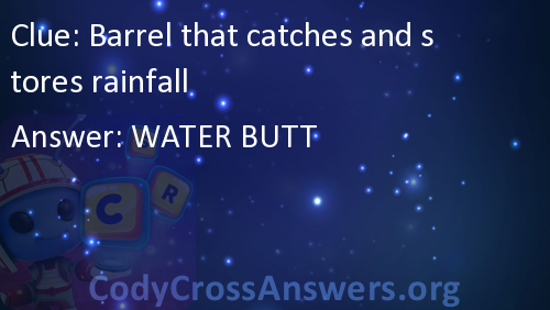 Barrel that catches and stores rainfall Answers