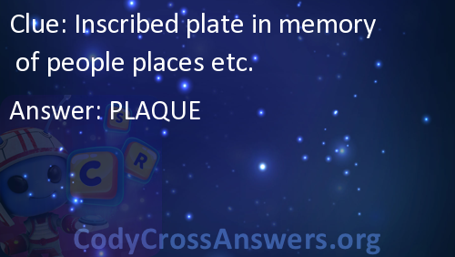 Inscribed plate in memory of people places etc. Answers