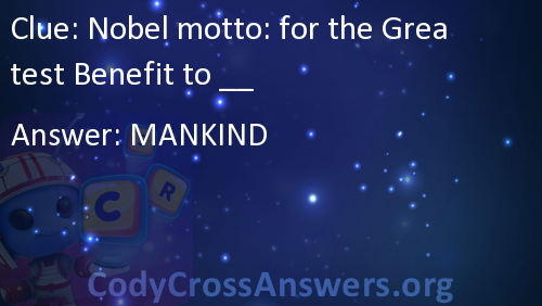 Nobel motto: for the Greatest Benefit to __ Answers