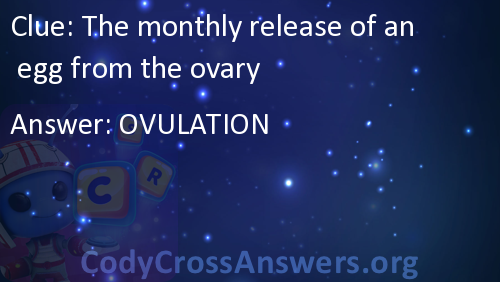 The monthly release of an egg from the ovary Answers