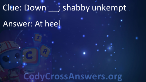 Down __; shabby unkempt Respuestas