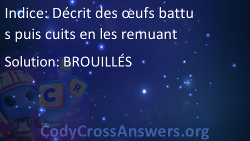 Décrit des œufs battus puis cuits en les remuant Solution