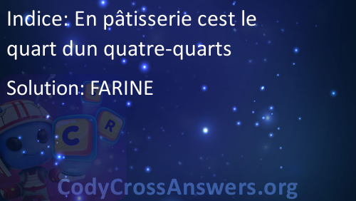 En pâtisserie cest le quart dun quatre-quarts Solution