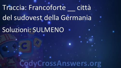 Francoforte __ città del sudovest della Germania Solution