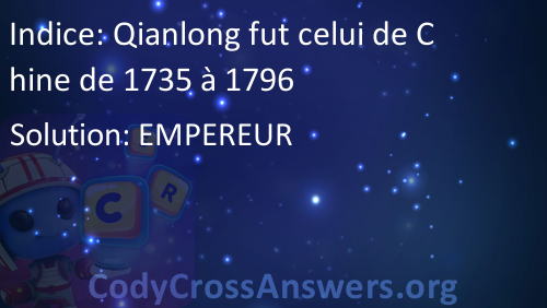Qianlong fut celui de Chine de 1735 à 1796 Solution