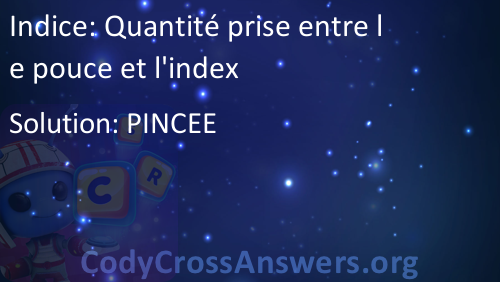 Quantité prise entre le pouce et l'index Solution