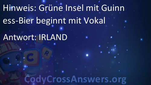 Grüne Insel mit Guinness-Bier beginnt mit Vokal Antwoorden