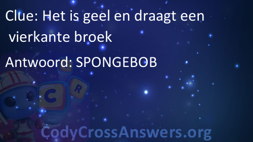 Het is geel en draagt een vierkante broek Antwoorden