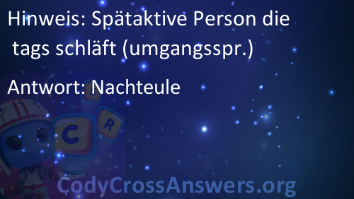 Spätaktive Person die tags schläft (umgangsspr.) Antwoorden