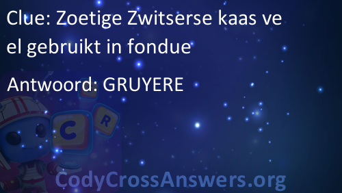Zoetige Zwitserse kaas veel gebruikt in fondue Antwoorden
