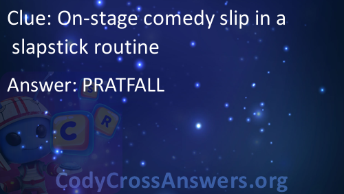 On-stage comedy slip in a slapstick routine Answers