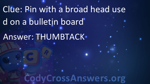 Pin with a broad head used on a bulletin board Answers