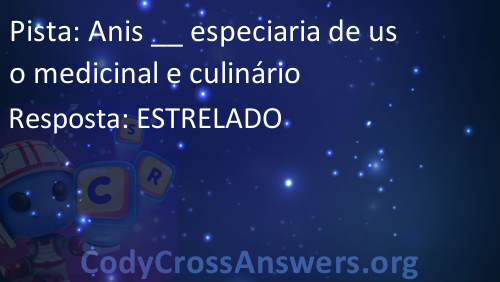 Anis __ especiaria de uso medicinal e culinário Respostas