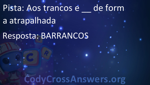 Aos trancos e __ de forma atrapalhada Respostas