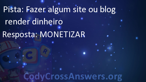 CodyCross é um famoso jogo recentemente lançado, desenvolvido pela Fanatee. Tem muitas palavras cruzadas divididas em diferentes mundos e grupos. Cada mundo tem mais de 20 grupos com 5 enigmas cada. Alguns dos mundos são: Planeta Terra, Sob O Mar, Invenções, Estações, Circo, Transportes e Artes Culinárias.