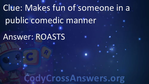 Makes fun of someone in a public comedic manner Respostas