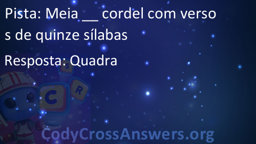 Meia __ cordel com versos de quinze sílabas Respostas