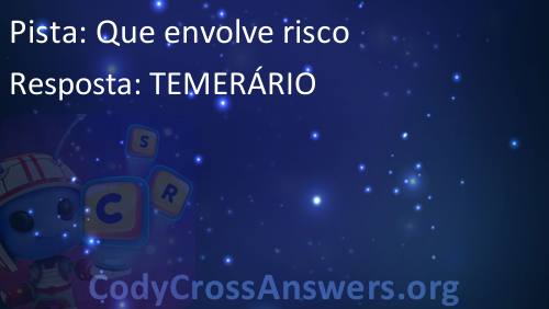 CodyCross é um famoso jogo recentemente lançado, desenvolvido pela Fanatee. Tem muitas palavras cruzadas divididas em diferentes mundos e grupos. Cada mundo tem mais de 20 grupos com 5 enigmas cada. Alguns dos mundos são: Planeta Terra, Sob O Mar, Invenções, Estações, Circo, Transportes e Artes Culinárias.