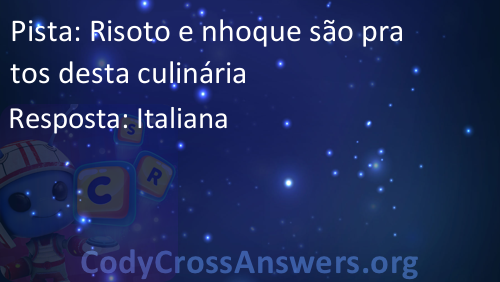 CodyCross é um famoso jogo recentemente lançado, desenvolvido pela Fanatee. Tem muitas palavras cruzadas divididas em diferentes mundos e grupos. Cada mundo tem mais de 20 grupos com 5 enigmas cada. Alguns dos mundos são: Planeta Terra, Sob O Mar, Invenções, Estações, Circo, Transportes e Artes Culinárias.
