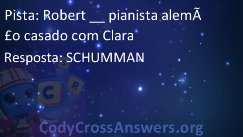 Robert __ pianista alemão casado com Clara Respostas