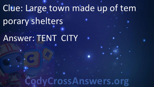 Large town made up of temporary shelters Answers