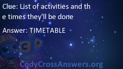 List of activities and the times they'll be done Answers