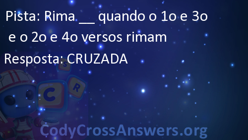 Rima __ quando o 1o e 3o e o 2o e 4o versos rimam Answers