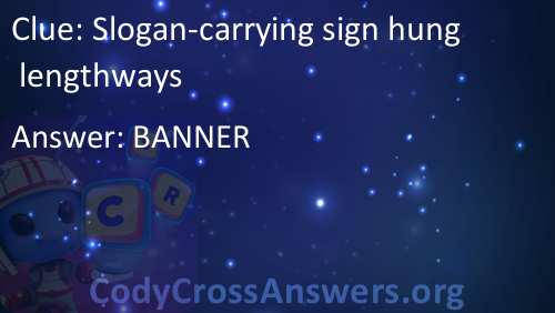Slogan-carrying sign hung lengthways Answers