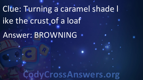 Turning a caramel shade like the crust of a loaf Answers