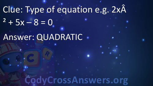 Type of equation e.g. 2x² + 5x – 8 = 0 Answers