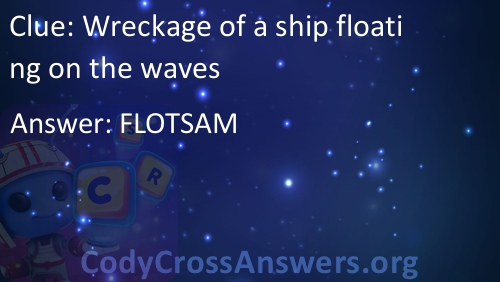 Wreckage of a ship floating on the waves Answers