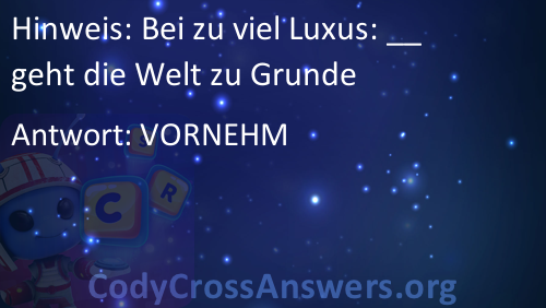 Bei zu viel Luxus: __ geht die Welt zu Grunde Lösungen